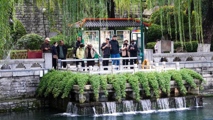 10月11日17时,趵突泉实时水位已达到30.01米。泉池之中,三窟竞涌,水花激荡,宛若玉轮翻涌、生生不息。连绵的秋雨为泉水提供了充沛的补给,趵突泉水位较两周前已抬升80厘米。