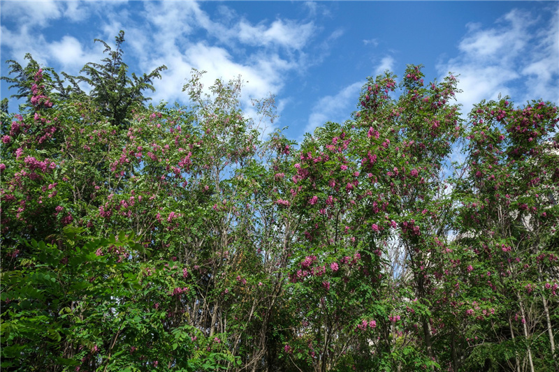国际在线山东频道消息:4月25日,济南天气晴好,鲍山公园内槐花盛开。鲍山公园位于历城区王舍人镇政府东2公里处,占地30公顷。鲍山公园原址为济钢的废炉渣存放地,济南钢铁集团为丰富职工文化生活,自20世纪90年代初开始建设鲍山公园。园内有“揽胜”长廊、鲍叔牙纪念馆、人工湖与人工瀑布等景观。(文 曹可凡)
