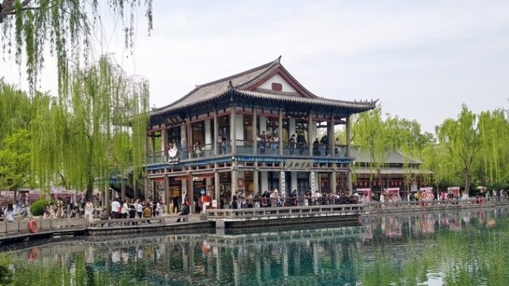 济南趵突泉玉兰盛开醉游人