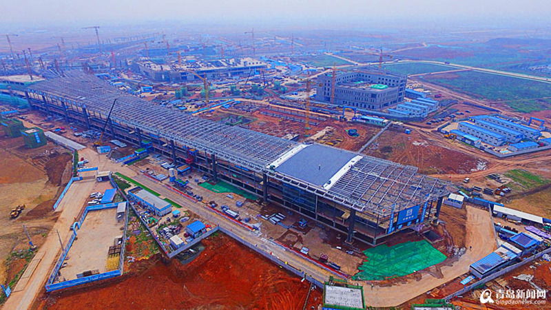 青岛新闻网记者从青岛新机场了解到,近日,由中建三局承建的新机场航站楼5个指廊主体结构现已全面封顶, 经过500多天的日夜奋战,一个呈放射状的巨大“海星”现已清晰可见。