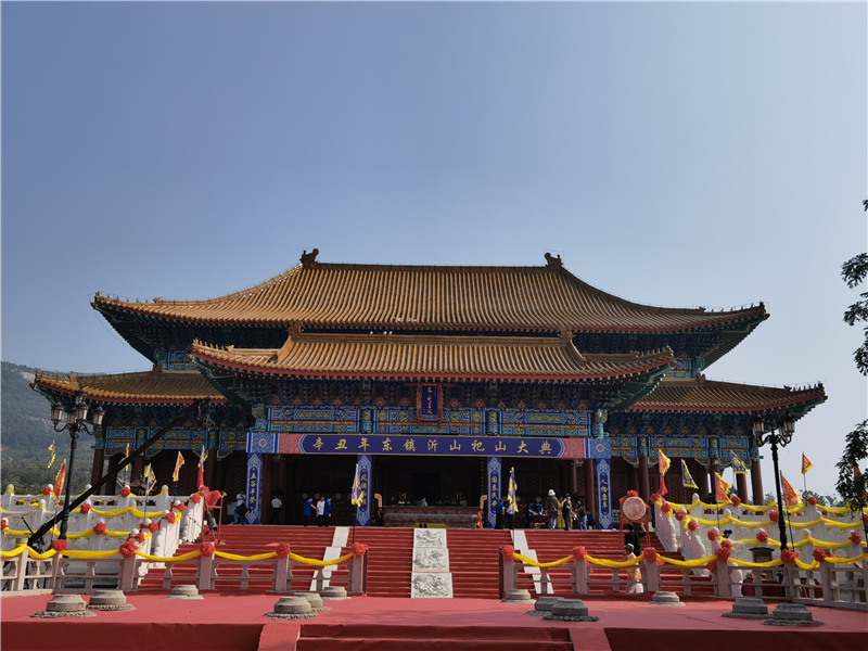 国际在线山东频道消息:5月22日,“祀山祈福 国泰民安”辛丑年东镇沂山祀山大典在山东省潍坊市临朐县沂山镇临朐沂山风景区东镇庙广场举行,来自山东省内外的游客齐聚东镇庙,在大美沂山钟灵毓秀风光中感受祀山大典的恢宏气势,向“五镇之首”沂山祈愿风调雨顺、喜乐安康、五谷丰登、国盛民昌。