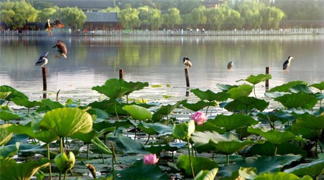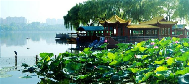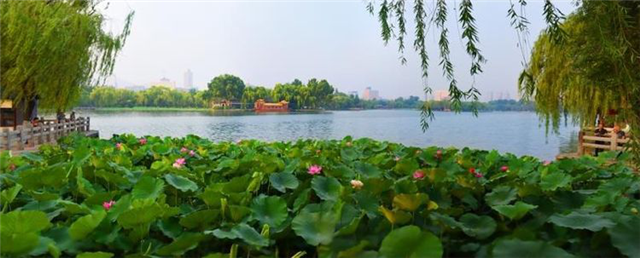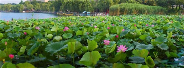 大明湖公园自1986年开始,每年在荷花盛开的季节举办明湖荷花艺术节,湖内近百亩荷花鲜艳夺目,随风摇摆,与公园内盆栽荷花遥相辉映,美不胜收。(文 王平)