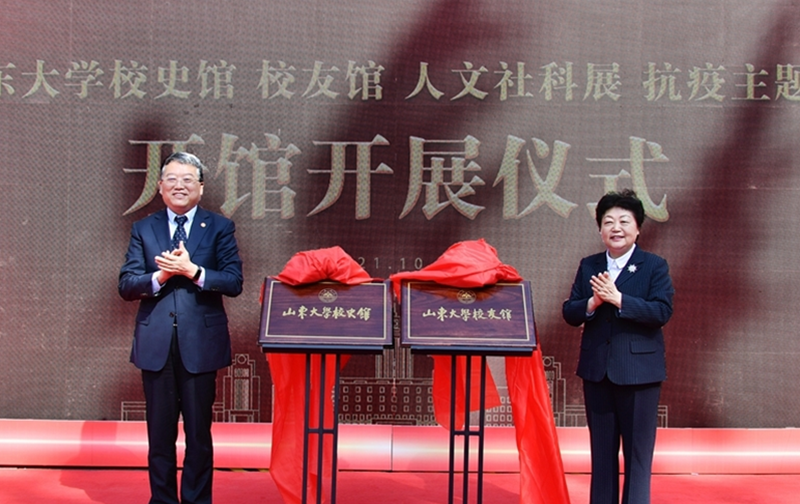 国际在线山东频道消息:10月13日,“山东大学校史馆 校友馆 人文社科展 抗疫主题展开馆开展仪式”举行。山东大学党委书记郭新立、校长樊丽明出席仪式并为校史馆、校友馆揭牌。