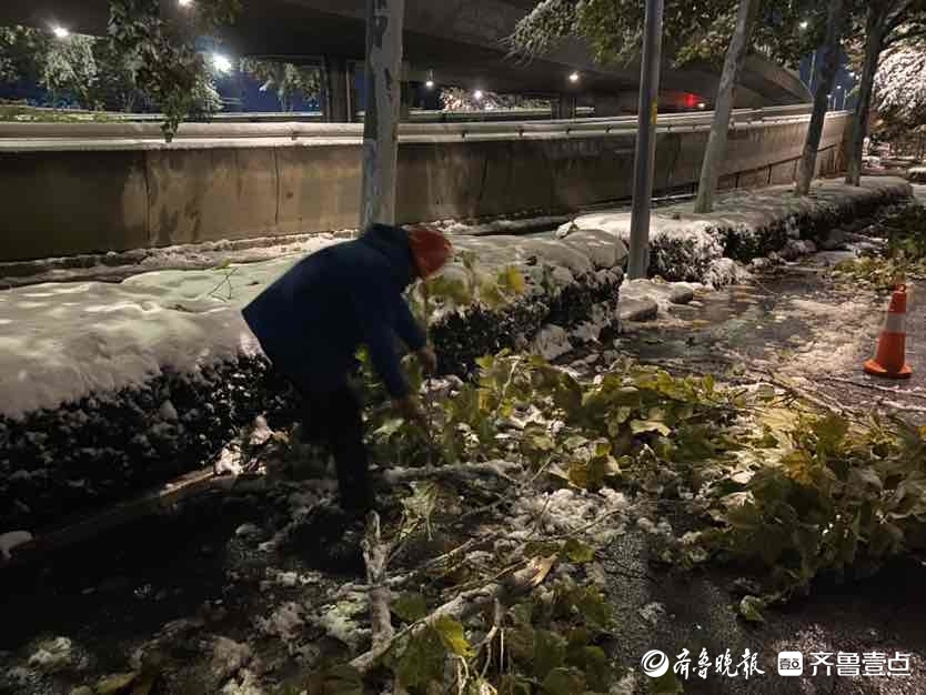 11月8日凌晨0点,齐鲁晚报·齐鲁壹点记者于历下区二环东路、解放东路等处看到,目前多数区域的折断树枝、倒伏树木清理工作都已步入尾声。