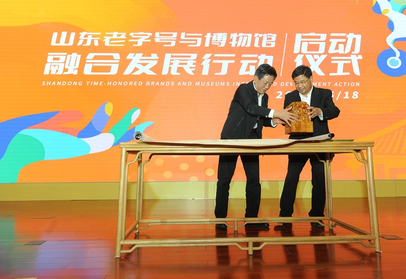 开幕式上,山东省商务厅党组成员、副厅长王洪平,山东省文化和旅游厅党组成员、副厅长、省文物局副局长王廷琦共同启动“山东老字号与博物馆融合发展行动”,山东成为全国首个进行老字号与博物馆多维度、跨领域融合推进商文旅一体化发展的省份。山东博物馆与山东省老字号企业协会签署了“山东老字号暨非遗文化体验馆”协议。