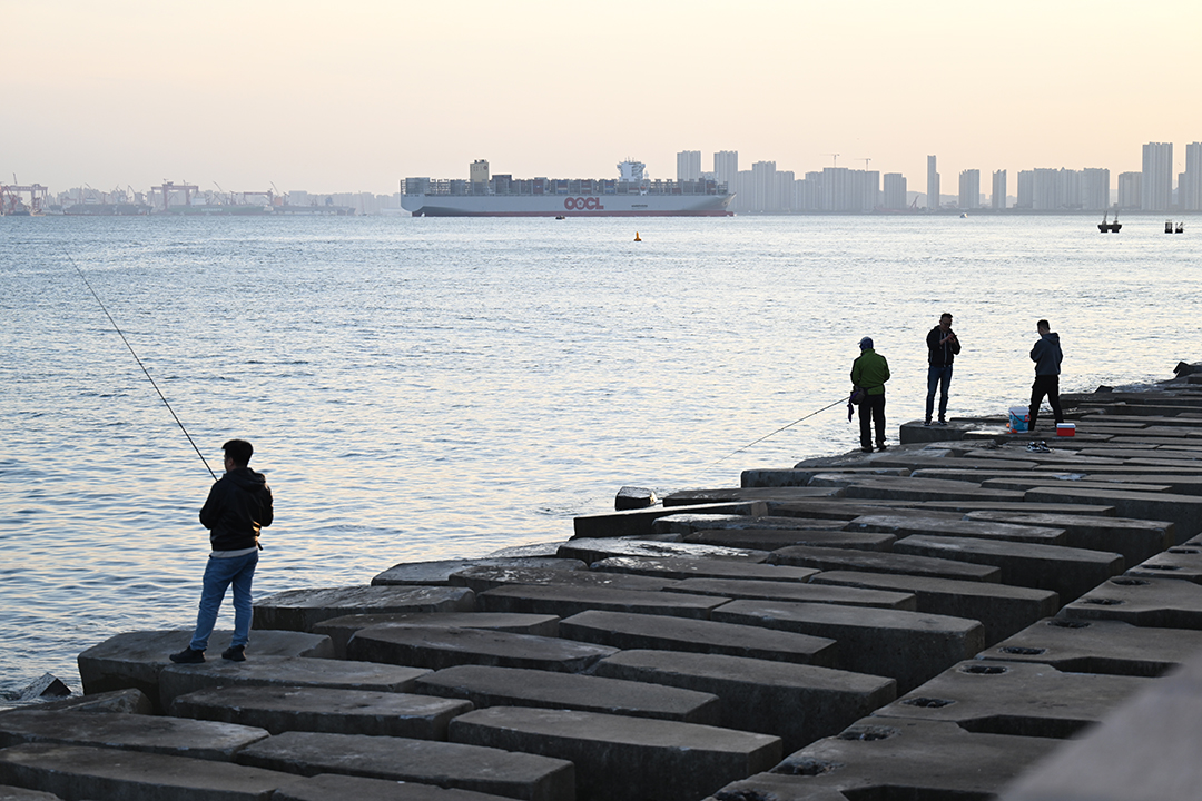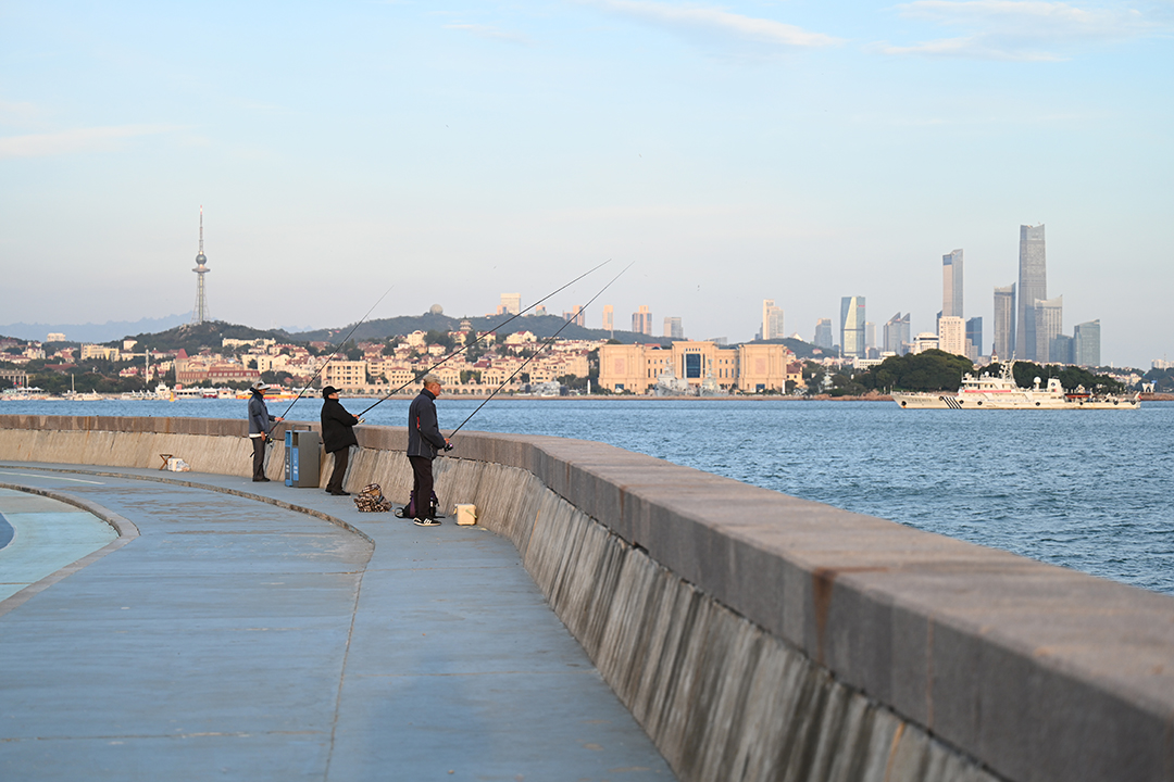 市民在青岛八大峡广场垂钓 摄影 杨光