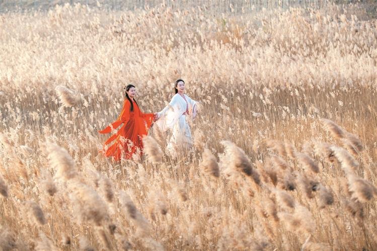 初冬时节,高青县黄河淤背区百里生态廊道沿线的芦花进入最佳观赏期。大片芦花迎风摇曳,苇浪此起彼伏,原生态的自然景观,吸引人们前来拍照游玩,乐享冬日时光。图为11月30日,市民在芦花丛中拍照游玩。(淄博日报记者 刘鑫)