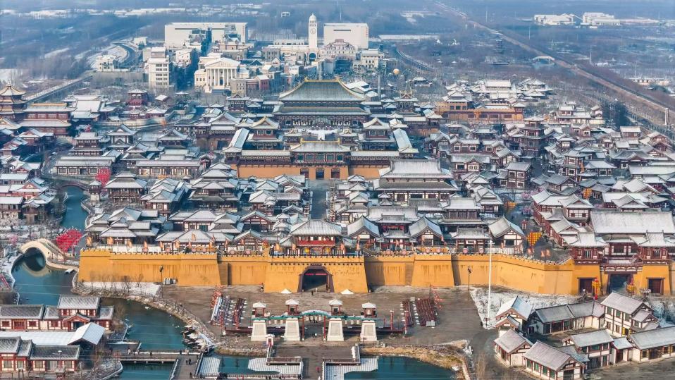 12月13日,山东省乐陵市迎来入冬以来的第一场雪。落雪后的乐陵影视城、千年枣林等各大景区银装素裹、浪漫静谧,美不胜收!(人民网记者 贾鹏)