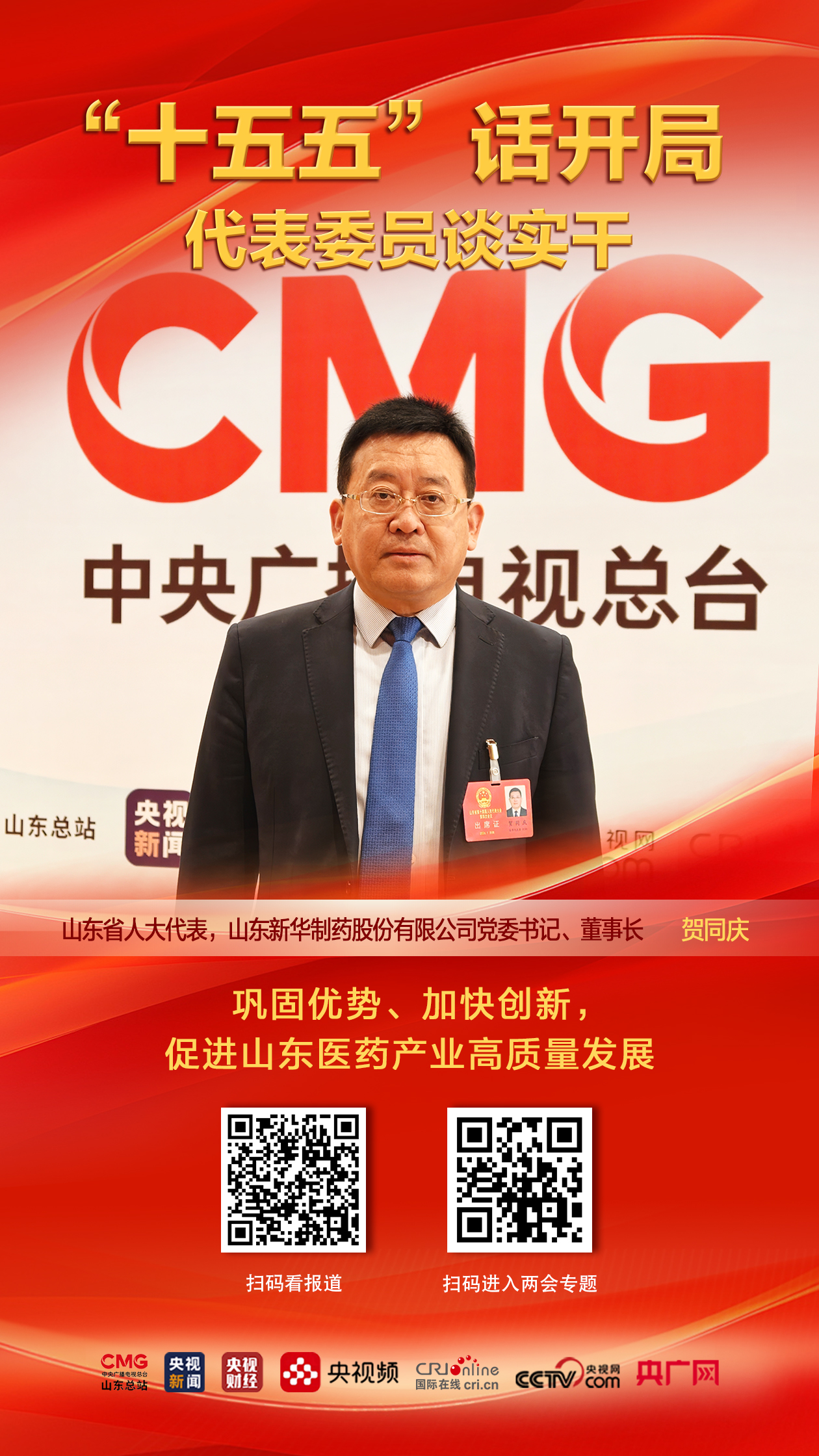 医药产业作为培育新质生产力、巩固实体经济根基的关键领域,既是民生保障的“压舱石”,也是产业升级的“突破口”。作为全国医药产业大省,山东如何促进医药产业高质量发展?山东省十四届人大四次会议期间,山东省人大代表,山东新华制药股份有限公司党委书记、董事长贺同庆带来了相关建议。