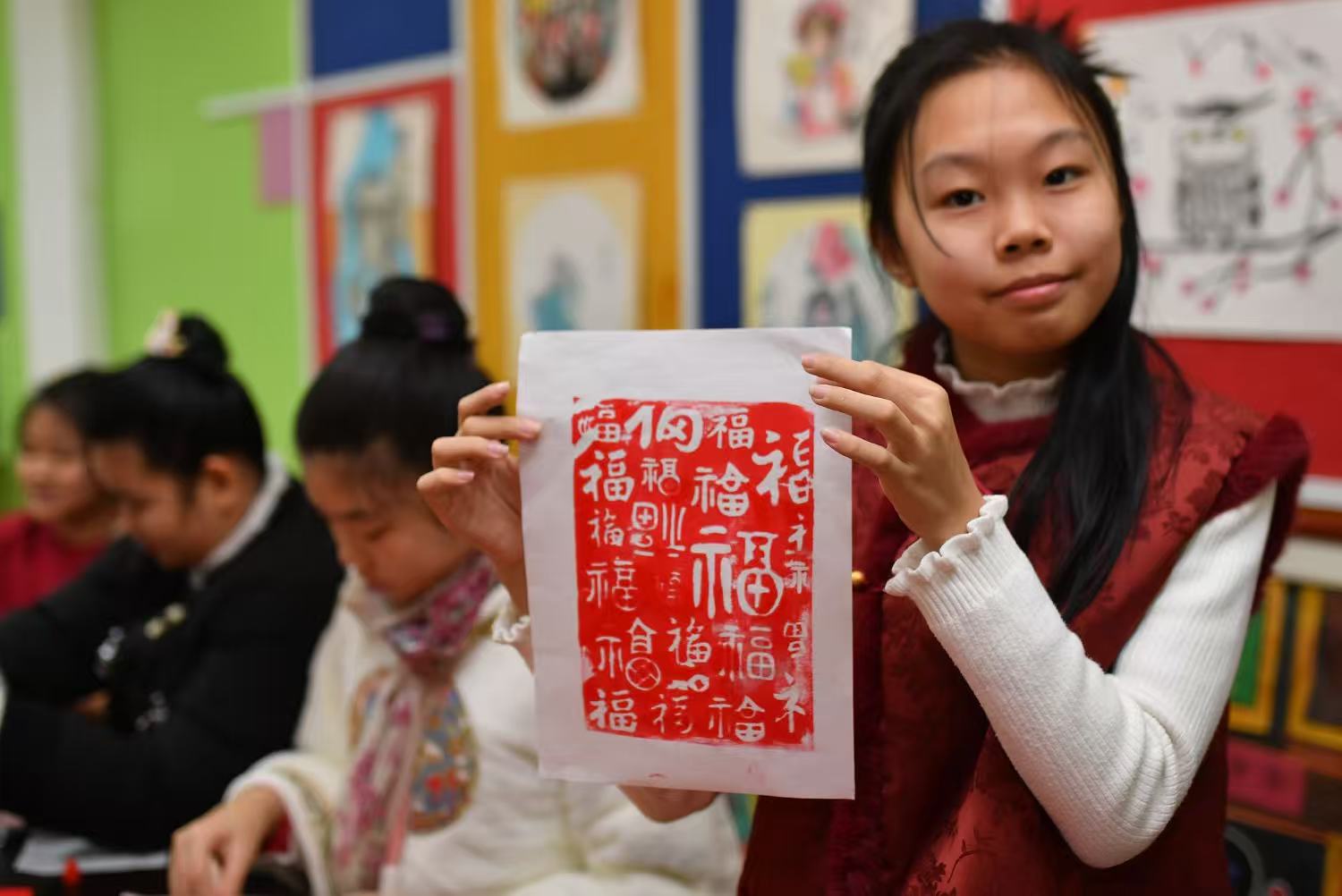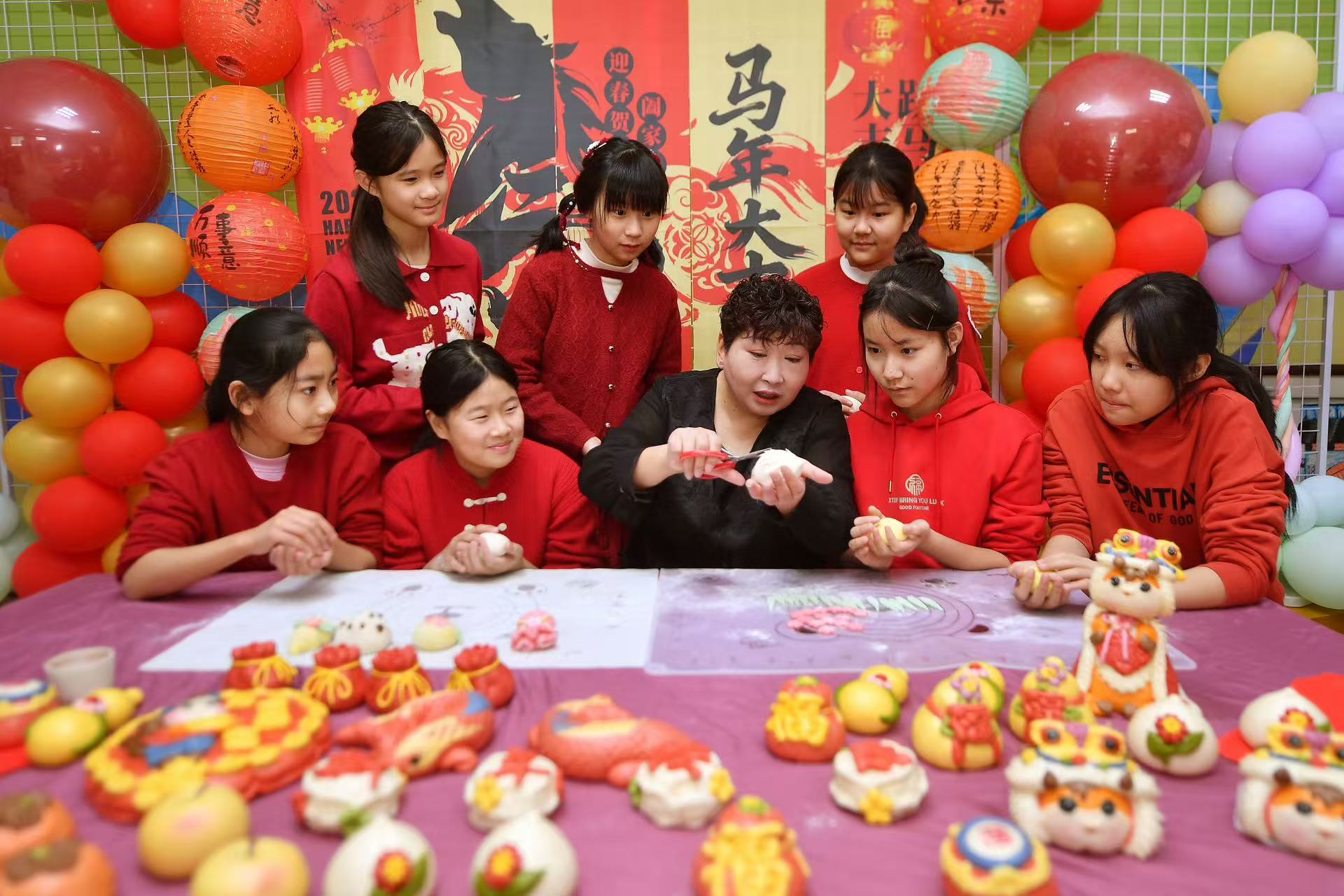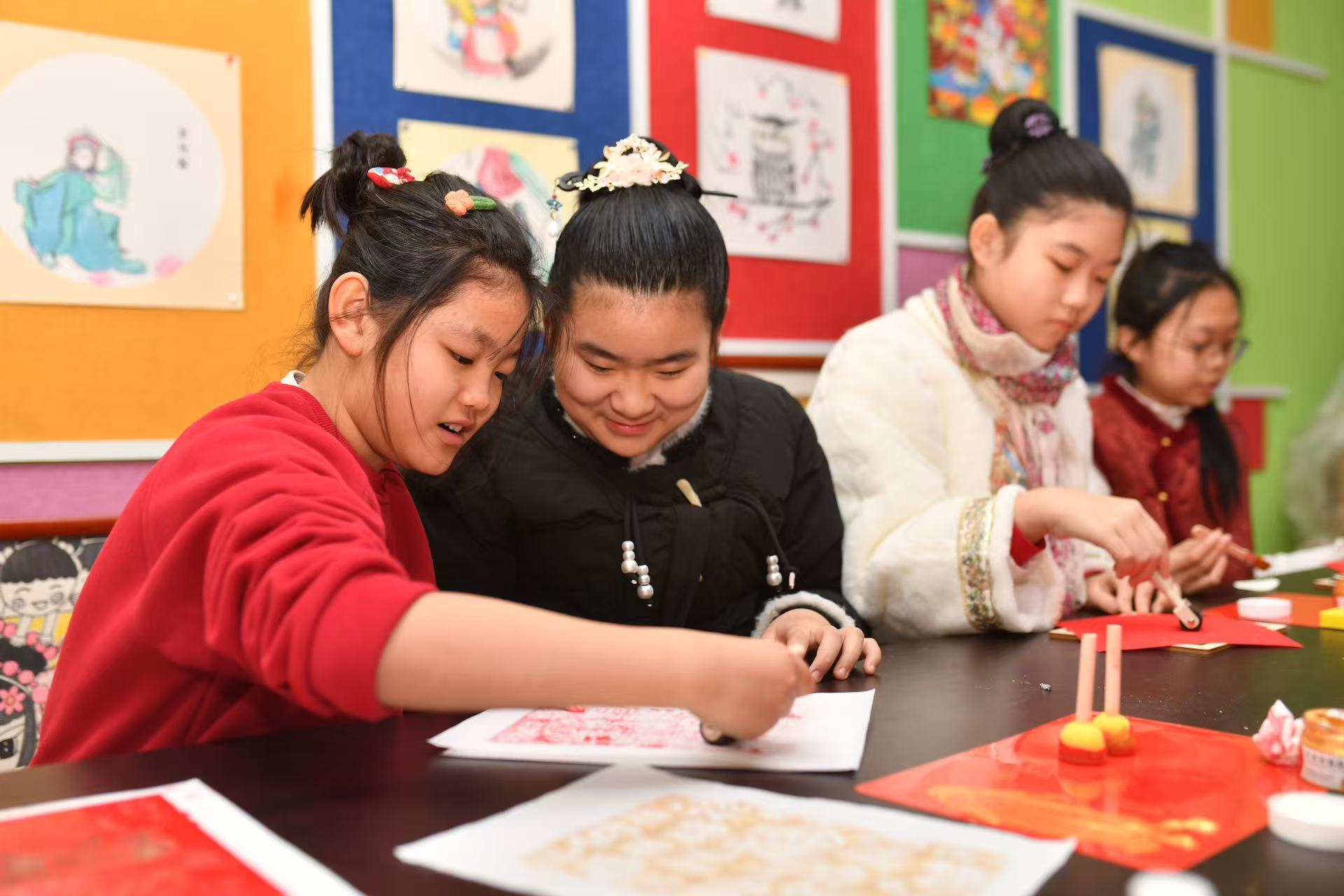 假日伊始,山东省青岛市市北区人民路第二小学开展体验民俗迎新春主题活动,孩子们通过学做花馍、剪纸、木版画等过程,品年俗、寻年味,感受传统文化的魅力。(文 王海滨)