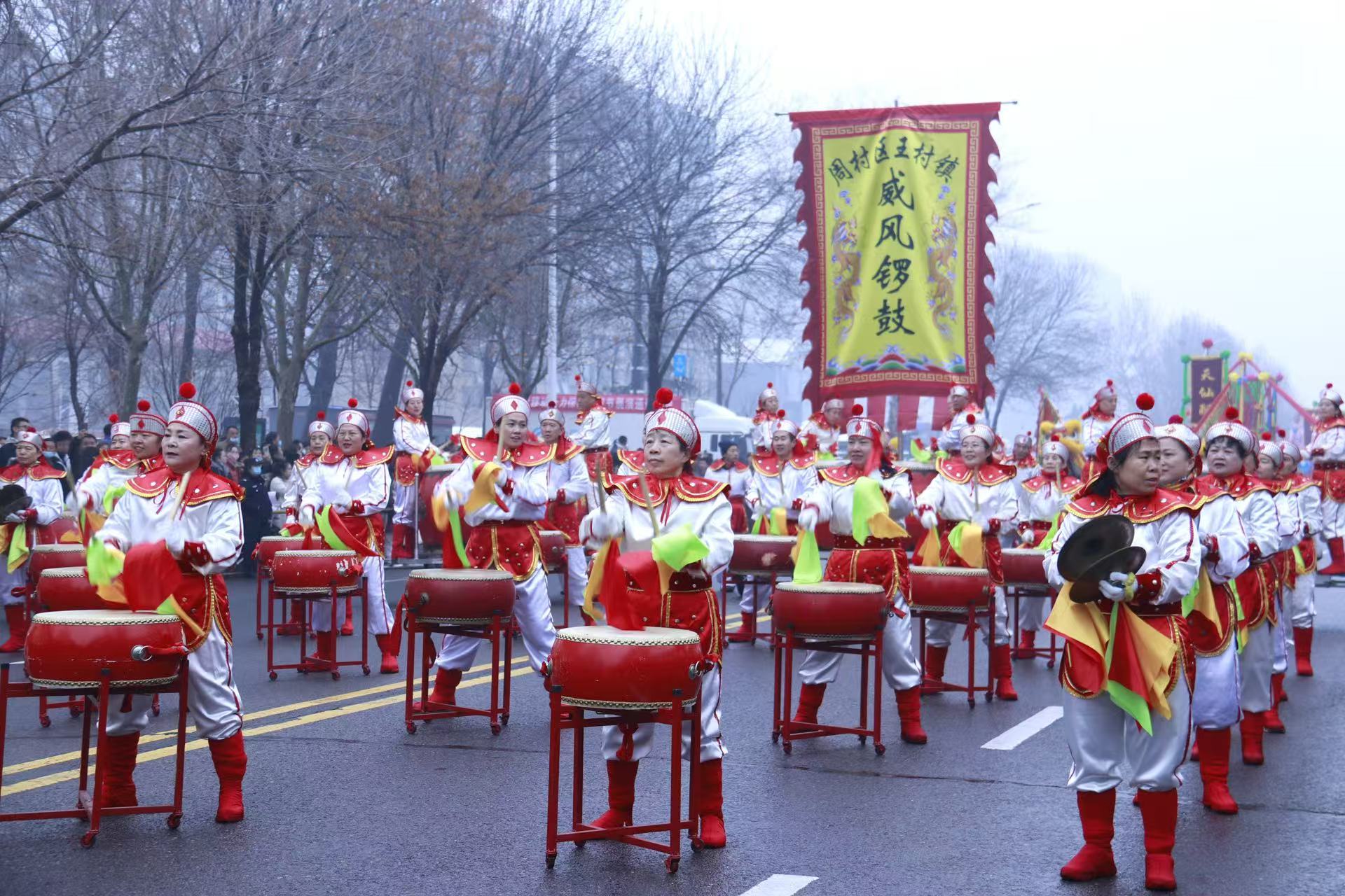 现场鼓声震天,表演者们以磅礴气势擂响新春的乐章 摄影 崔学飞