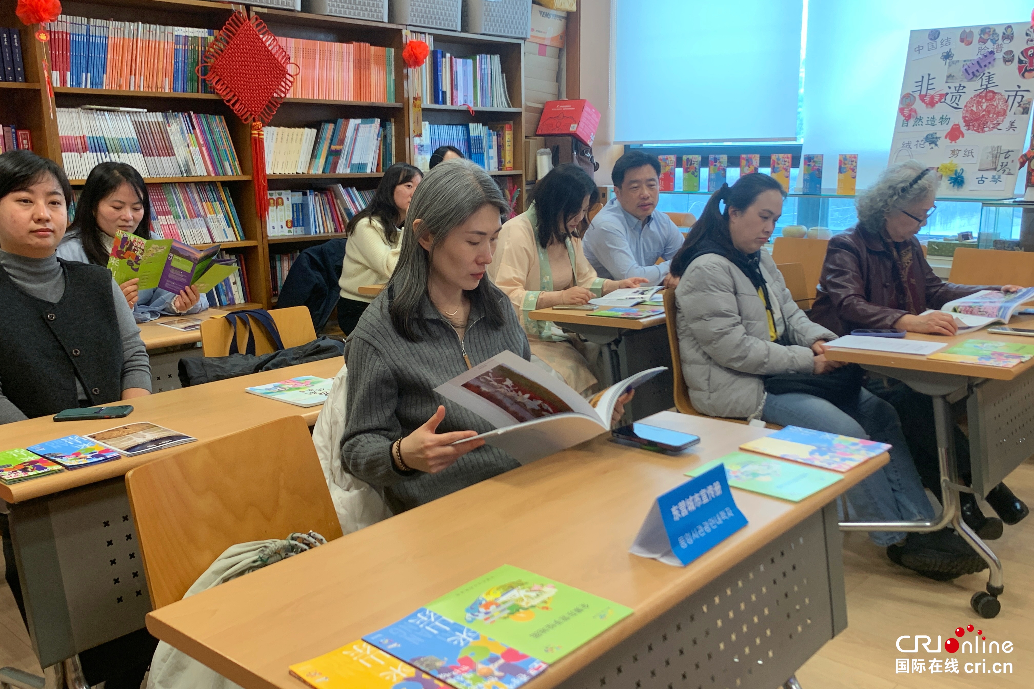 活动中,东营城市形象推介受到韩国嘉宾的高度关注。现场循环播放东营城市宣传片,全景呈现黄河入海口河海相拥的自然奇观、黄河三角洲的湿地生态风光与东营城市现代发展全貌;主题展区内,东营城市宣传系列画册、孙子文化主题书籍一一陈列,广饶齐笔、东营剪纸等非遗文创产品同步亮相,全方位展现了东营的生态底蕴、历史文脉与文化活力。韩国嘉宾一边翻阅资料、观赏非遗展品,一边交流探讨东营城市印象,纷纷表示本次活动为两地后续文化交流、研学互动打开了新空间,也为中国文化研究提供了鲜活素材。