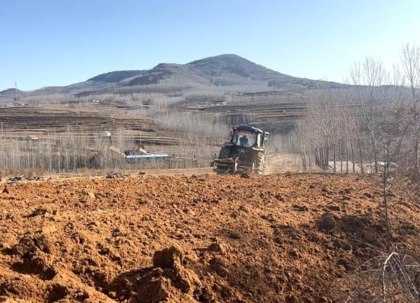 图为柘山烟站党支部积极协调机械帮助烟农做好烟田冬耕