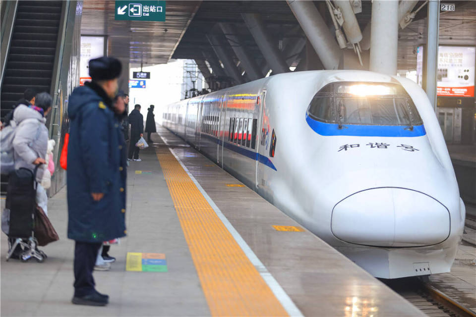 2月2日,一趟列车驶入青岛火车北站。张鹰 摄