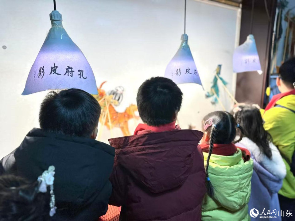 游客小朋友体验孔府皮影戏。人民网记者 乔姝摄