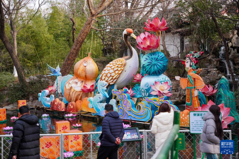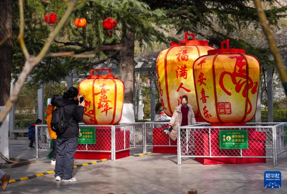 近日,布置在济南城区街道和公园的多组大型彩灯安装完毕,为即将到来的新春佳节增添了喜庆的色彩。