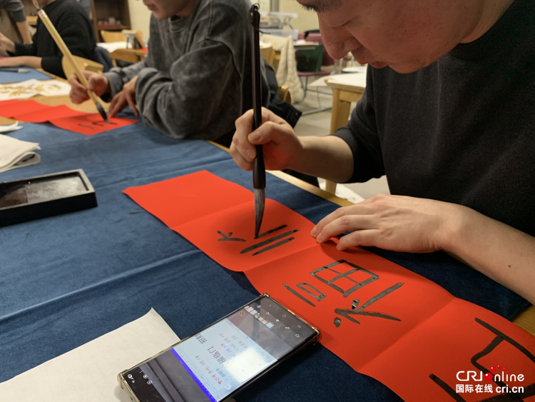中国传统文化爱好者为韩国友人讲解中国书法和春联民俗文化内涵 摄影 李好