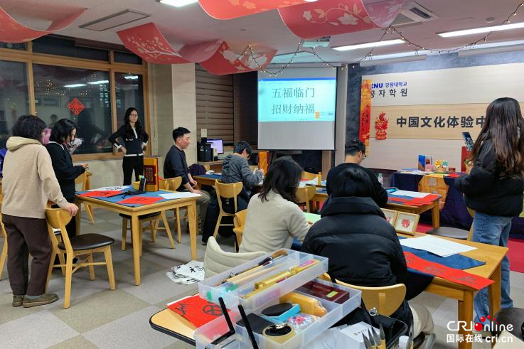 2月10日,乐享中国节“笔书吉祥”东营春节民俗文化交流活动在韩国春川市国立江原大学孔子学院中国文化体验中心举行。活动围绕中国春节特有的民俗形式——春联展开交流,以文化讲解、书法体验、春联创作等丰富形式,让韩国友人沉浸式感受中国春节的喜庆氛围,加深对于中华优秀传统文化的理解和喜爱。