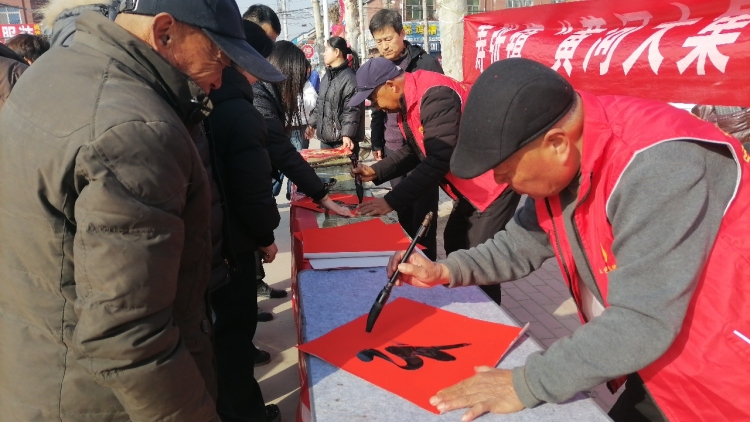 寿张镇黄河大集写福字活动 供图 阳谷县委宣传部