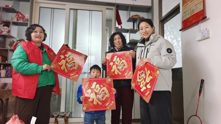 志愿者主动送福上门 供图 阳谷县委宣传部
