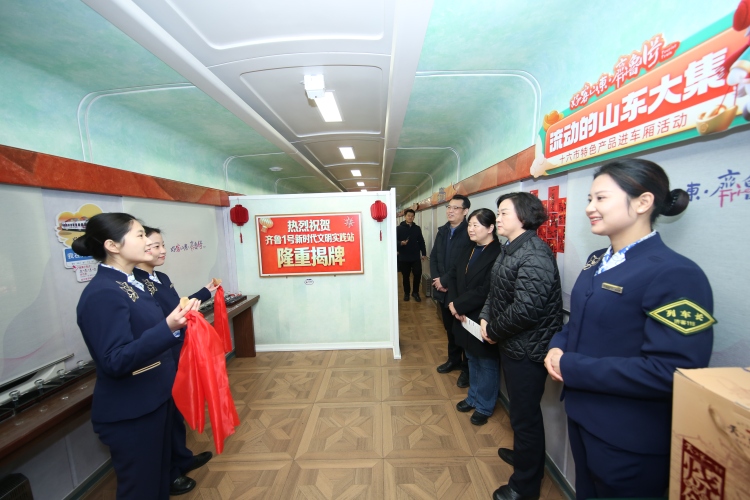 “齐鲁1号”旅游列车新时代文明实践站将“好客山东”人文底蕴与客运服务深度融合。车厢内打造孔孟名言文化墙、山东非遗文创展示角,配备含大字版时刻表、折叠老花镜的助老爱心包等适老服务,设置多功能便民药箱、泉城茶水站、休闲区,并提供齐鲁文化典故读物等服务。