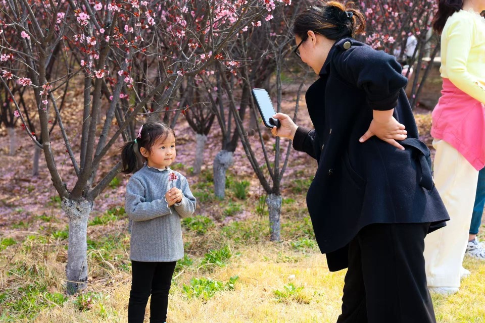 家长给孩子留下春日剪影 供图 淄博高新区宣传新闻中心