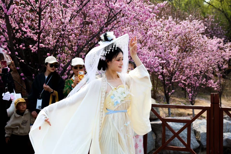 3月28日,山东淄博高新区第二届花山赏花出游季在淄博花山公园启幕。园内梅花谷、海棠谷、玉兰谷、樱花谷、丁香谷、桃杏谷组成“六谷”特色景观,漫山花海绵延起伏,春色尽染。十二位身着盛装的“花神”翩然起舞、沿谷巡游,衣袂飘飘间与花海交相辉映,吸引众多市民游客驻足观赏、拍照打卡,在国风古韵与自然景致中感受别样春意。(文 郭方强 李娟)